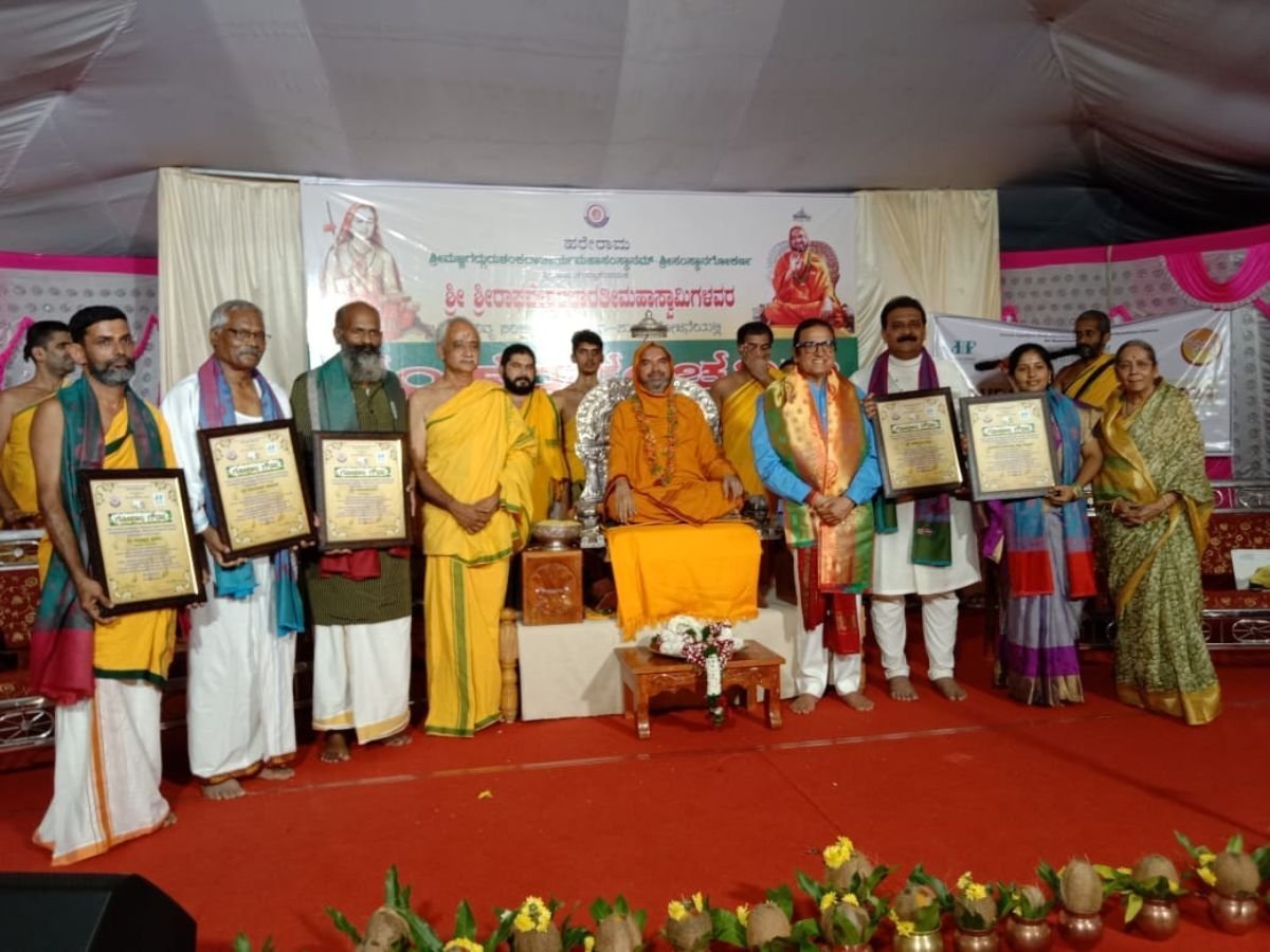 Mumbai (Maharashtra) [India], May 18:  Dr. Dinesh Shahra, renowned philanthropist and founder of Dinesh Shahra Foundation (DSF), presented the esteemed Gopal Gaurav Awards, initiated by Shankaracharya Raghweshwara Bharati to five awardees, Mr. Subrahmanya Prasad Kasaragod, Smt Nagaratna Hebbar, Dr. Jeevankumar Doddaballapur , Mr. Baburao Patil Bailahongal, Mr.Mahendra Singhi Hubli, recognizing their outstanding contributions to the preservation of indigenous cow care practices, further to DSF’s initiative of Gau Shakti. The awards ceremony, held at Ramdeva Ashram, Bhanukuli, Karnataka, was graced by the esteemed presence of spiritual leader Sri Sri Raghaveshwara Bharathi ji, marking a significant celebration of traditional cow care values.