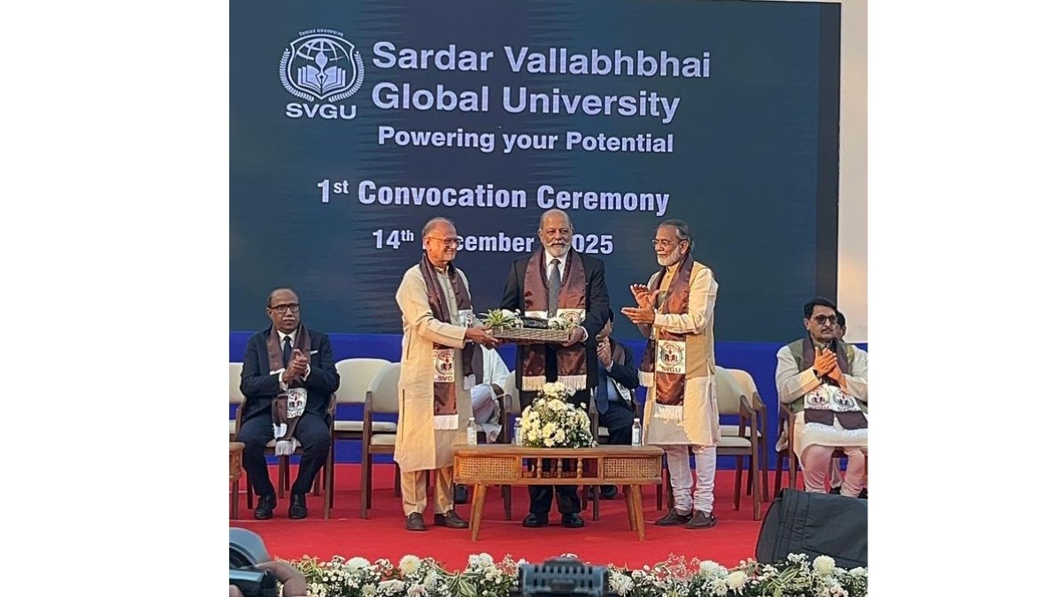 New Delhi [India], December 15: Sardar Vallabhbhai Global University (SVGU) has successfully organised its First Convocation Ceremony on Sunday at its campus. The maiden convocation ceremony was graced by Chief Guest Hon’ble Ambassador Sujan R. Chinoy — Director General, Manohar Parrikar Defence Research Institute & Analysis (MP-DRIA), New Delhi, along with SVGU President Sri Siddharth Patel (MBA, University of Dallas, USA), Provost Prof. (Dr.) Subhash Brahmbhatt (renowned Indologist) and Registrar Dr Mayur Shah.